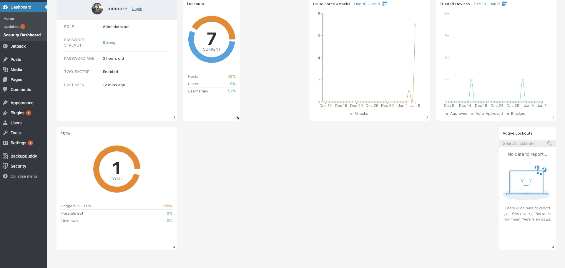 Once you’ve enabled the dashboard, you can view it from both the Admin Dashboard and Security settings in your WordPress Admin menu.