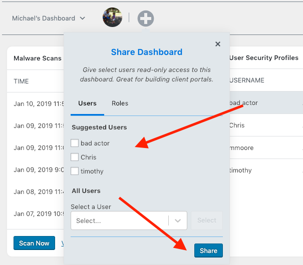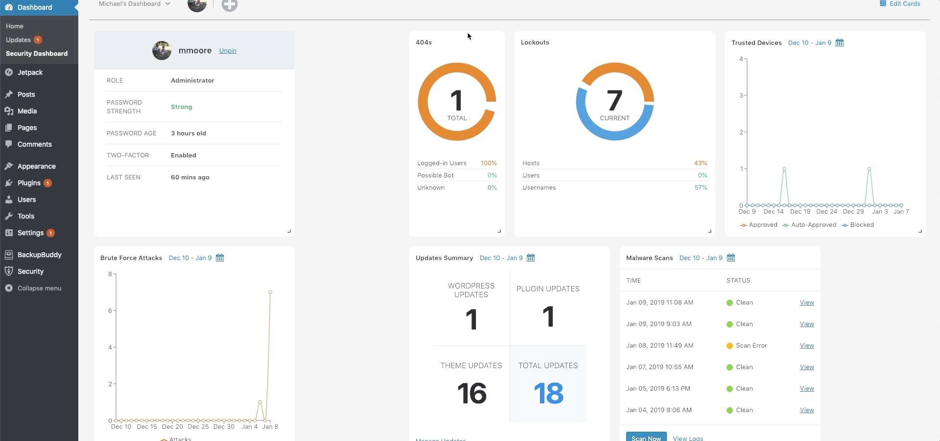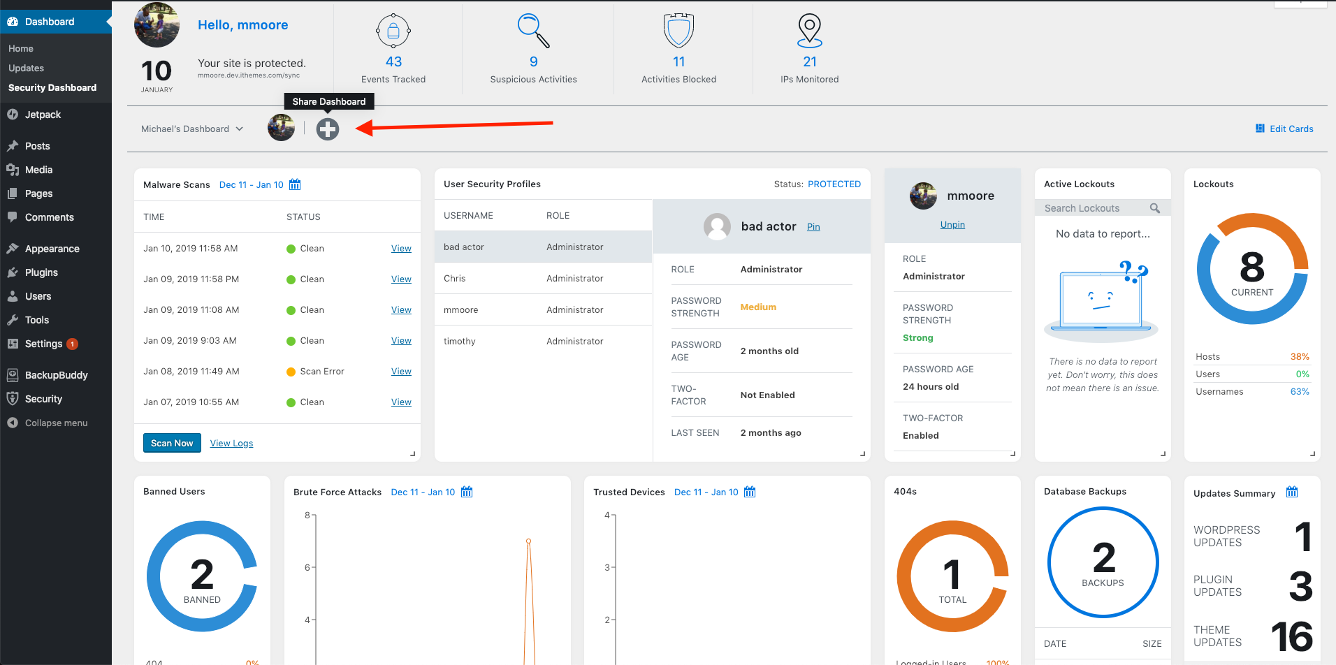 Is there another person on the team that manages the site? Tell them to make their own dashboard! Whether you need a new dashboard for a client or you want a dashboard to view the user card for every admin user, iThemes Security has you covered.